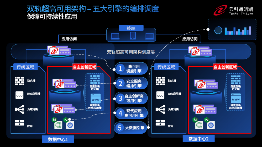 为实现双轨超高可用架构信创区和非信创区的跨域协同,实现信创区域和非信创区域的平滑过渡,米兰电竞通过五大引擎实现多层次的应用可持续性。